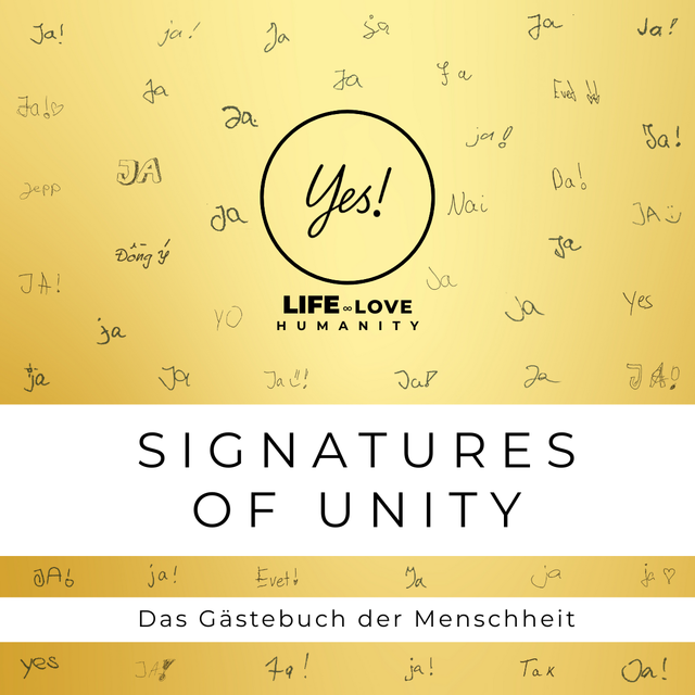 Stell dir vor, Millionen von Menschen sagen Ja! – Ja! zum Leben. Ja! zur Liebe. Ja! zur Menschlichkeit. Genau dieses Ja! sammeln wir weltweit in handschriftlicher Form in den Signatures of Unity, dem Gästebuch der Menschheit.